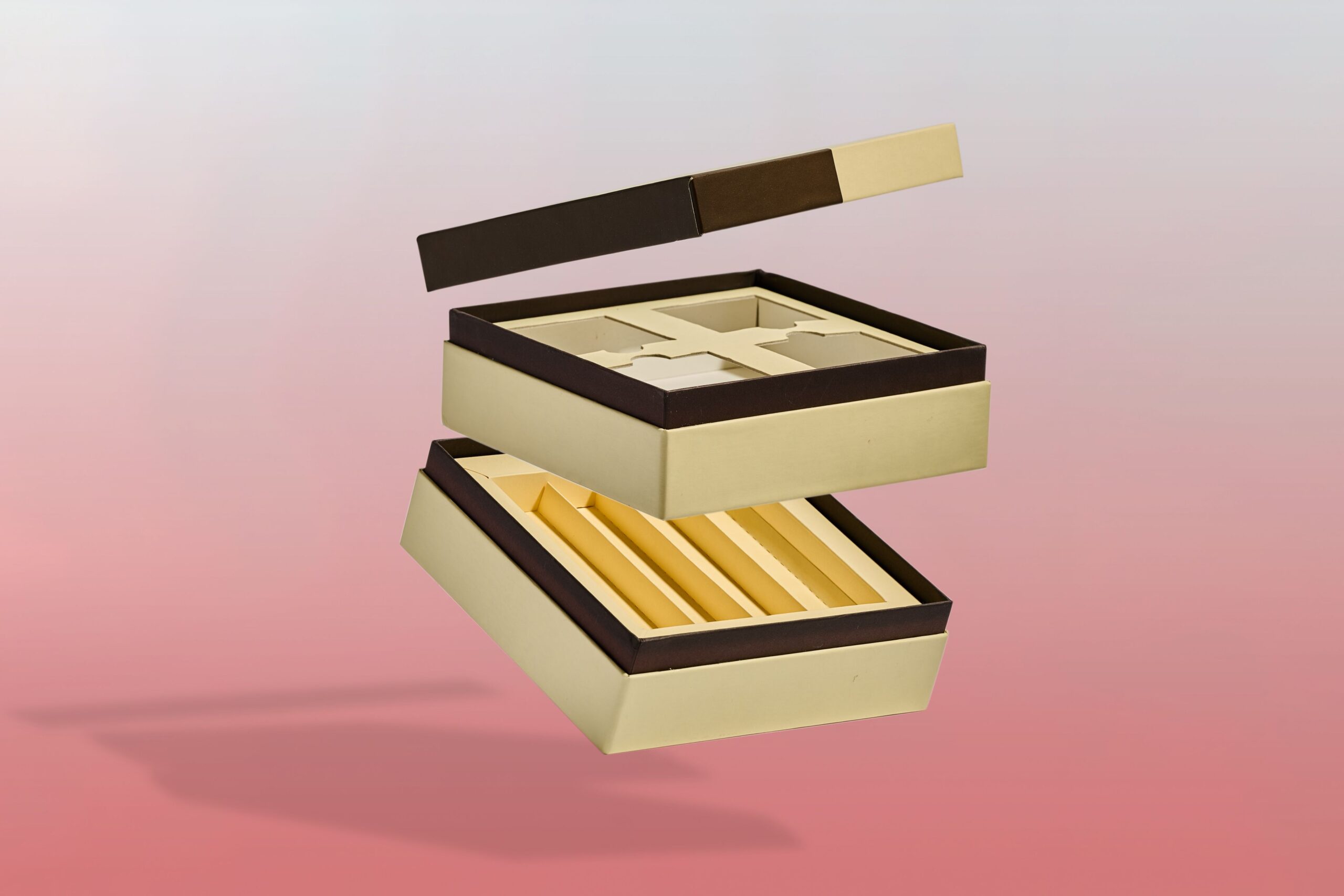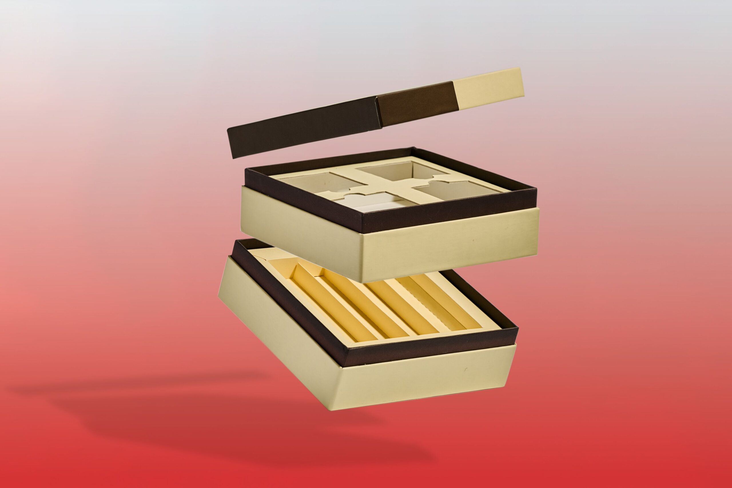 Le nostre confezioni, dalle scatole per panettoni ai porta cioccolatini, utilizzano materiali di alta qualità che garantiscono protezione e freschezza. Finiture come la stampa a caldo, la plastificazione opaca o lucida e il rilievo a secco, aggiungono un tocco distintivo e professionale.